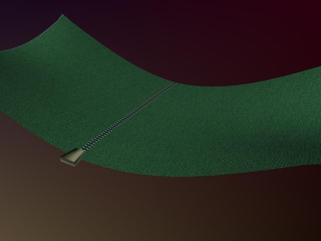 您的拉链现已完成。若要打开和关闭拉链,您现在可以调整 pPlane1Follicle5050 的“参数 V”(Parameter V)属性。