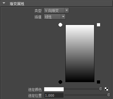 - 在“属性编辑器”(Attribute Editor)的“渐变属性”(Ramp Attributes)部分,选择位于颜色渐变左下方的小圆形。
