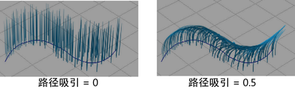 定义在增长模拟的每个步骤将管吸引到笔划路径的力的幅值。如果该值为 0,则不对管应用力。随着该值增大,管将收敛到路径。如果该值为正值,将吸引管,如果为负值,将排斥管。