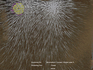 单击头发可将笔刷的效果锁定到笔刷半径中的头发。沿任意方向拖动,将成束效果应用于头发选择。