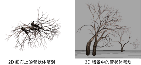 在 2D 画布上,具有管状体的笔划可以快速生成复杂的图像。在 3D 场景中,这些管状体可以增长到 3D 空间。