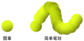 在渲染笔划时,绘制将应用于重叠图章中的笔划。