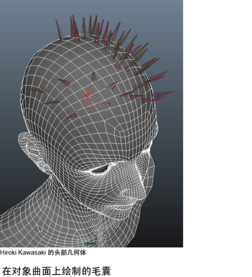 为获得最佳结果,曲面上的 UV 不应重叠,并且应介于 0 和 1 之间。自动映射可快速实现该目标。(请参见自动 UV 映射。)您还可以选择希望使用哪个 UV 集。请参见选择要将哪些 UV 集用于头发(仅多边形)。您也可以使用“绘制毛囊”(Paint Hair Follicles)工具将毛囊添加到曲面中。使用该工具可以在曲面上为毛囊和被动毛囊的放置绘制相应的区域。您还可以使用该工具来删除毛囊。请参见使用 UV 集创建 nHair。