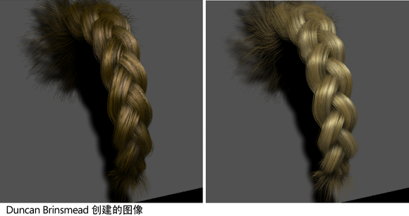 对于马尾辫和编辫,正确的头发自身阴影对实现束的管状外观至关重要。请记住,束与建模的管不同,后者使用朝向灯光的曲面的角度来确定明暗效果。而在束中,背光一侧的头发与朝光一侧的头发一样明亮,除非它们收到其他头发投射的阴影。对于“Paint Effects”渲染,必须在禁用“使用中间距离”(Use Mid Dist)的情况下使用深度贴图阴影。应仔细调整光线的“偏移”(Bias),这有助于增加“过滤器”(Filter)的大小(3 或更大)。(有关灯光和阴影属性的详细信息,请参见阴影属性和 Maya 中的阴影)。