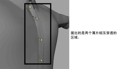 虽然衬衫已扣上纽扣,但用户会注意到整体外观看起来还有些不对。布面看起来拉伸过度,两片衣襟在某些点互相穿透。现在,需要进行一些调整,来解决此问题。