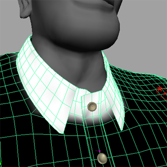 用户可能会注意到,尽管现在碰撞是正确的,但衬衫的某些部位仍不能像真实的布料般做出反应。最明显的是,衣领和袖口显得太宽松,而真实的衬衫则是笔挺的。通过绘制顶点特性可以修复此问题。