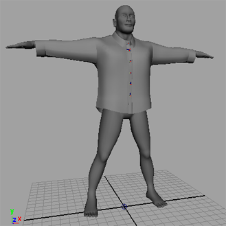 本示例将介绍如何使用 nCloth 模拟一件扣上纽扣的衬衫。