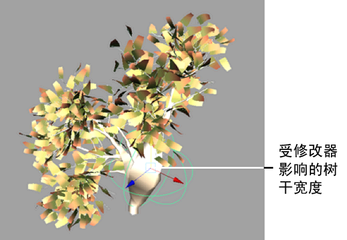 充当推动管远离线修改器形状中心的力。正值朝远离中心的方向推动,而负值朝中心方向推动。例如,使用该选项推动“Paint Effects”树,就好像有风一样。