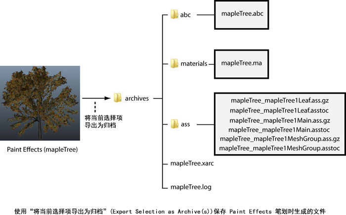 当您使用“将当前选择项导出为归档”(Export Selection as Archive(s))或“场景批量转化为归档”(Batch Convert Scenes to Archives),Maya 会在指定位置下创建 archive 目录。它包含以下文件: