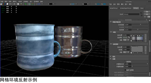 可以将简单的基于渐变的环境与“网格”(Mesh)“笔刷类型”(Brush Type)一起使用。这可以用于创建诸如铬、水、玻璃和有光泽的油漆等外观。