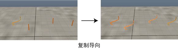 用于从选定的导向复制形状(包括操纵的 CV),然后将形状粘贴到其他导向。