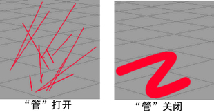 绘制笔划时,“Paint Effects”基于鼠标或光笔输入对笔划路径上的点采样。对点采样时,“Paint Effects”沿上一个采样点和当前采样点之间的路径种植新管,然后使之前种植的管再增长一个分段。绘制笔划完成后,将发生下列两种情况之一: