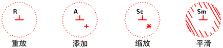 请注意笔刷图章会发生变化,以指示所选的操作。