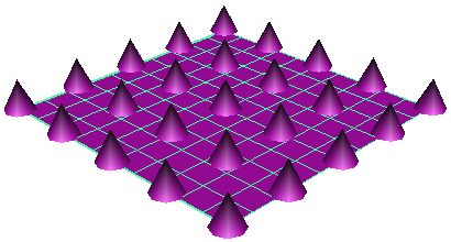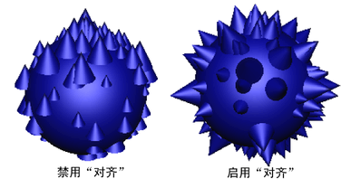启用“栅格”(Grid)可使用在“U 栅格大小”(U Grid Size)和“V 栅格大小”(V Grid Size)框中设定的栅格放置几何体。如果不启用“栅格”(Grid)Maya 将使用顶点位置来放置几何体。