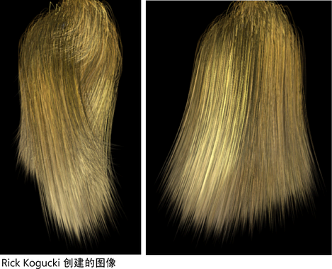 提示: 使用“Paint Effects”中的“多条纹”(Multi Streaks)可以方便地渲染更多的头发。 这些属性在 hairSystemShape 节点“属性编辑器”(Attribute Editor)的“多条纹”(Multi Streaks)区域中。