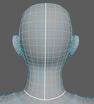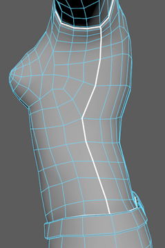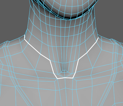 - 选择颈部底部周围的边,如下图所示(沿着颈部背面的循环边)。