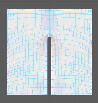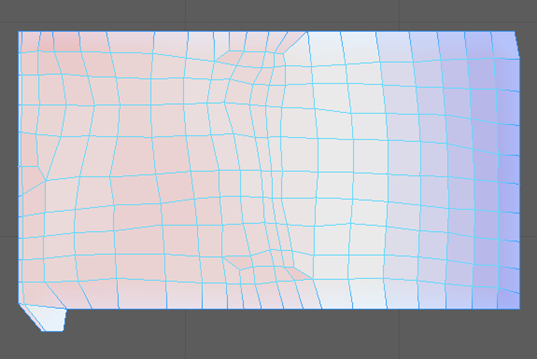 来查看 UV 壳上的扭曲程度。白色区域没有扭曲,蓝色区域被压缩,红色区域被拉伸。