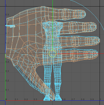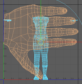 - 现已完成穿过手侧面的切割,使用“UV 壳选择”(UV Shell Selection)选择顶部部位,然后按住 Shift 键并单击“创建”(Create)部分下的“平面”(Planar)。将“投影源”(Project From)更改为 Y 轴,然后单击“投影”(Project)。