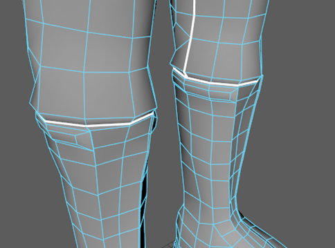 - 在靴子和裤子连接处切割一条圆形接缝。