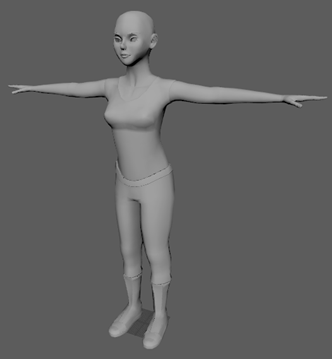 场景中显示的模型 Emma 未上纹理。在本课中,将为其指定与提供的纹理对齐的合适 UV 坐标。
