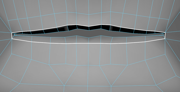 - 现在,沿颈部中心向上到下巴创建另一个切割。