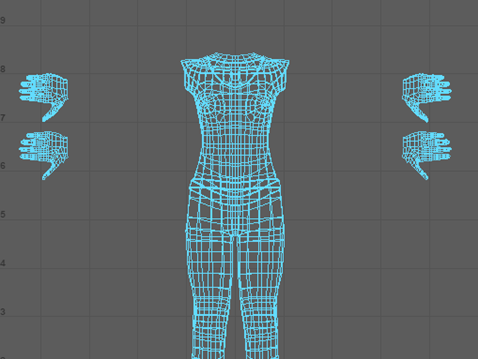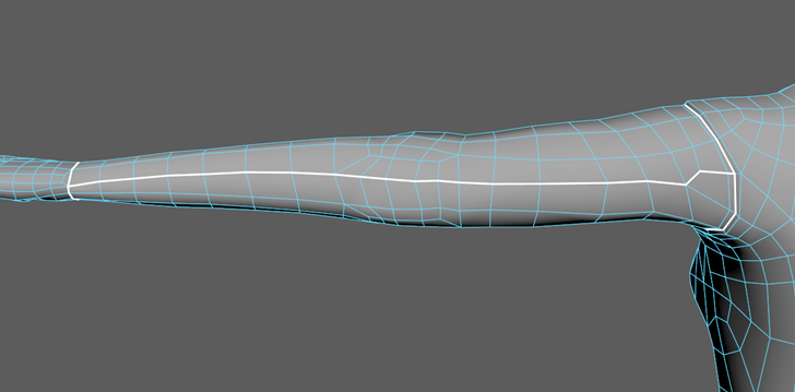 - 再进行两次切割(在躯干的每侧各一次),并将刚刚围绕腰部创建的切割连接到下臂。