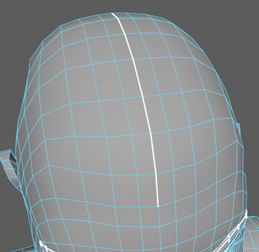 - 沿前额中心向下到颈部背面创建切割。