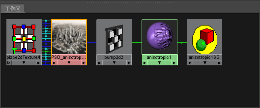 - 在 Hypershade 中,选择 PSD 节点(在我们的示例中为 PSD_anisotropic1)。