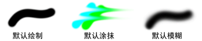 所有笔刷类型都使用笔刷属性所定义的形状。例如,如果使用具有管的“模糊”(Blur)笔刷在某个笔划上绘制,则会在管跨过该绘制的位置进行模糊,而不是沿着“模糊”(Blur)笔划路径进行模糊。