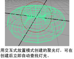 当创建新的聚光灯、区域光或平行光时,可以启用“交互式放置”(Interactive Placement),以便在创建上述灯光之后可以自动浏览此灯光。然后,可以按住 Alt 键拖动(在 Mac OS X 上为按住 Option 键拖动)以翻滚光源并将其定位在所需的位置。