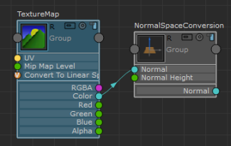 当将法线贴图直接连接到“TraditionalGameSurfaceShader”的“法线”(Normal)属性时,请使用“法线贴图”(Normal Map)节点,而不是“纹理贴图”(Texture Map)节点。“法线贴图”(Normal Map)节点将法线贴图转化为世界空间,而“纹理贴图”(Texture Map)节点将其保持在切线空间。