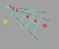 衰退区域指示在三个截断圆锥体形状中需要照明的区域和不需要照明的区域。使用衰退区域操纵器来精确指示这些区域。