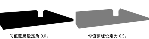 0 至 1 之间的任何值均可充当 Alpha 通道值的倍增,以达到已修改的值。使用滑块或输入值,以调整遮罩通道的密度或可见性。
