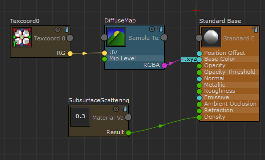 - 将“材质变量”(Material Variable)节点的“结果”(Result)输出连接到“标准基础”(Standard Base)节点的“密度”(Density)输入。