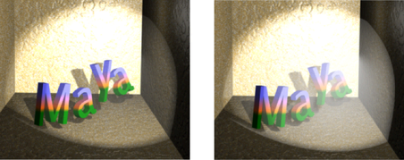 单击“灯光雾”(Light Fog)旁边的贴图按钮时,Maya 会创建灯光雾节点,并将它连接到灯光。雾图标(本质上是灯光图标的扩展)会显示在视图中。将“灯光雾”(Light Fog)连接到灯光后,单击字段末尾的按钮可以访问灯光雾属性。