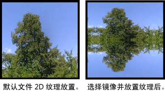 仅当“U 向重复”(U Repeat) 或“V 向重复”(V Repeat) 属性值大于 1 时才适用。分别在 U 方向和 V 方向进行镜像。启用后,将对重复区域进行镜像 - 图像行显示为自身的镜像图像。这有助于掩饰重复区域之间的接缝效果。