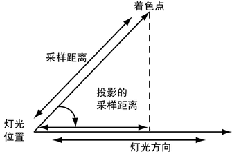 用数学语言来说,它将“光源到对象”向量的投影长度返回到灯光方向向量上。