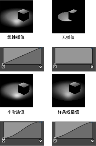 指控制颜色在渐变中的融合方式。从下拉列表中选择一个选项:“无”(None)、“线性”(Linear)、“平滑”(Smooth)、“样条线”(Spline)。默认为“线性”(Linear)。