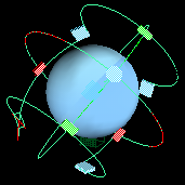 您希望将 3D 飞碟放置在街道场景的图像中。街道场景的图像应精确反射到飞碟上。使用环境纹理可以实现该目的,但这将要求您提供其他图像 — 如果使用“透视投影类型”(Perspective Proj Type),可以将街道场景的图像投影到替代几何体上。投影到替代几何体上的图像精确反射到飞碟上。