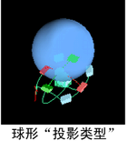 将纹理放置在球内,并将其投影到对象上。例如,Maya 投影纹理的方式就像绕棒棒糖拉动糖果包装纸一样。-z 极上有一个映射收缩点,与球形和圆柱形映射中的 +y 和 -y 极上的两个收缩点相对。