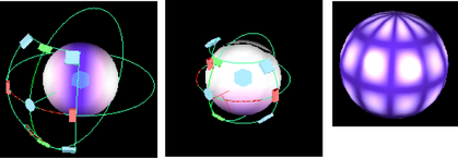 结合使用这些操纵器和 Maya 的变换工具,可以在三个维度上定向和定位纹理贴图。用于纹理映射的操纵器与用于纹理多边形的操纵器完全相同。详细信息请参见多边形建模概述(位于手册的“多边形建模”部分)。