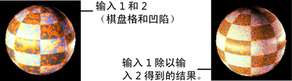 例如,如果“Input 1”是“棋盘格”(Checker)纹理,而“Input 2”是“凹陷”(Crater)纹理,则选择“无运算”(No Operation)时,仅会渲染“棋盘格”(Checker)纹理的属性。