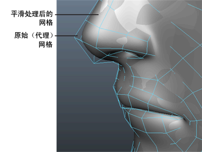 “细分曲面代理”(Subdiv Proxy)平滑方法通过添加多边形并将其放置在原始的未平滑网格(代理)内来平滑选定的网格。