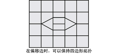 可以使用“偏移循环边工具”(Offset Edge Loop Tool)来保持四边形拓扑的完整性,以便在所选边的任一侧插入边。当一条边在由四边形构成的网格上偏移时,“偏移循环边工具”(Offset Edge Loop Tool)将在所选边的任一侧创建两条新边并细分面,以确保保持四边形拓扑。