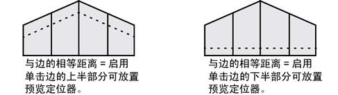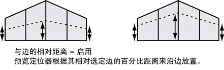 如果将“保持位置”(Maintain position)设定为“与边的相对距离”(Relative distance from edge)(默认),则会基于沿选定边的百分比距离沿选定边定位点预览定位器。例如,如果单击选定边并将其拖动到沿选定边约一半距离的位置,则线预览定位器将大概显示在其他所有沿选定环形边的所有其他条边的中间位置。
