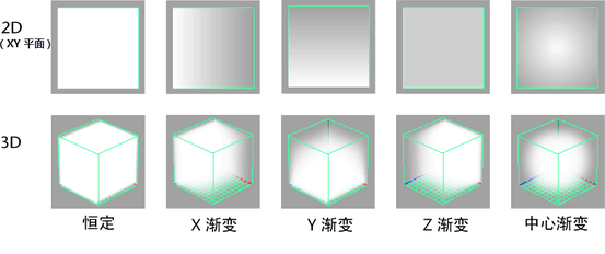 设定值沿 Z 轴从 0 到 1 的渐变。