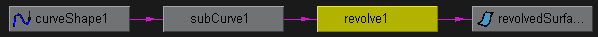 这种节点链,从曲线到旋转节点再到曲面,称为曲面的构建历史。有关构建历史的最重要一点在于,您可以通过编辑节点属性和节点之间的连接来更改它。曲线可以重新定形或者可以更改旋转节点上的属性,生成的曲面将自动更新。