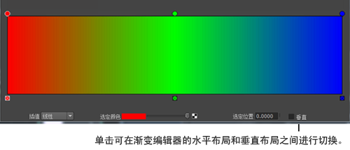 此类渐变使用与单值渐变相同的位置标记和插值控件,但所做的更改均以灰色或颜色显示。