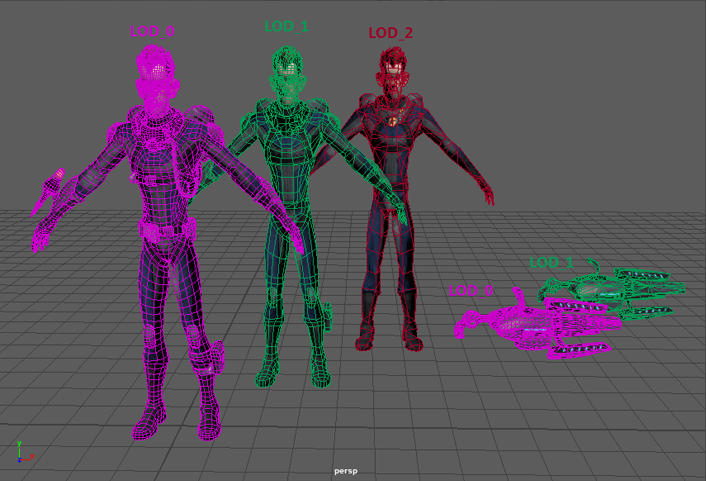 用于关联相同几何体的多个版本,以便在游戏引擎中基于特定阈值进行替换。这样使用远处和近处之间的多个版本就可以为近处生成模型的高质量版本,为远处生成模型的低质量版本。
