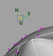 在曲面的 U 向或 V 向移动选定的顶点或 CV。通常,应针对小型的 CV 集使用此选项。操纵器将指示曲面法线、U 方向和 V 方向。